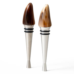 This refined set includes two stainless steel wine stoppers, each entirely handmade in Mantua, Italy, by our master craftsmen and adorned with natural horn details. Available in two distinctive natural horn shades — black or blonde brown — each piece is unique.