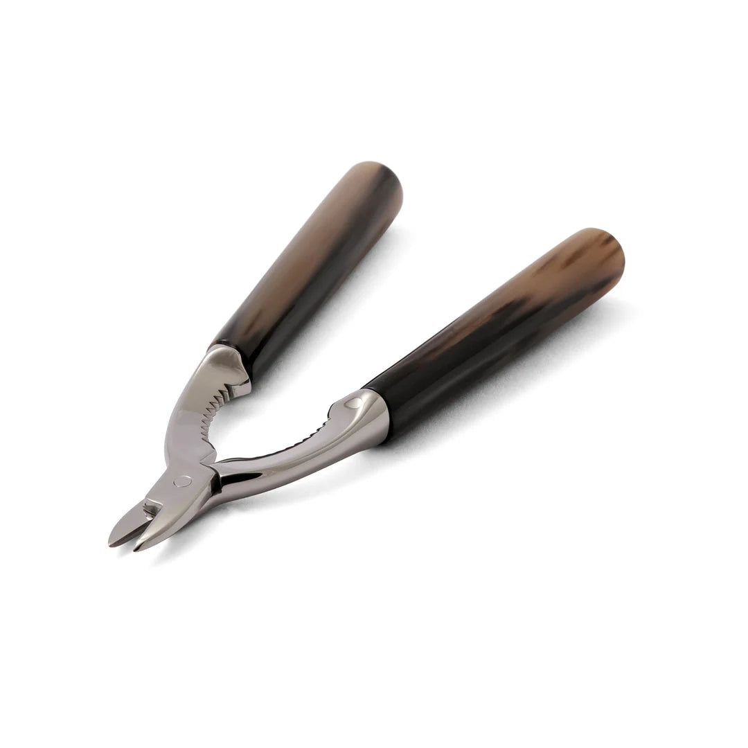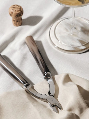 This refined champagne plier features a handle crafted from natural horn, entirely handmade in Mantua, Italy, by our master craftsmen. The forged stainless steel tip ensures a firm grip, while the ergonomic shape of the handle follows the natural curvature of the horn for both comfort and elegance.